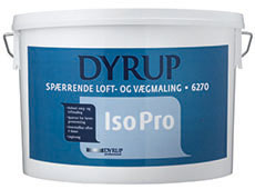 DYRUP IsoPro Spærrende Loft- og Vægmaling (6270) DYRUP IsoPro er en spærrende acrylplastmaling til lofter og vægge. Glans ca. 5 Spærrer effektivt for gennemslag af vandopløselige farvestoffer som f.eks. nikotin, tørre vandskjoler og træolier læs mere Datablade