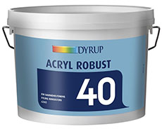 ROBUST 40 DYRUP Robust Acryl 40 er en fyldig acryl maling som har en flot sammenflydning. Giver en blokfri og hård overflade. Velegnet til vægge og lofter hvor der stilles ekstra store krav til vaskbarhed og modstandsdygtighed. Glans ca. 40. læs mere Datablade