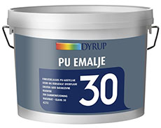 DYRUP PU Emalje 30 (6272) DYRUP PU Emalje 30 er en førsteklasses polyurethan-forstærket akryl emalje med rigtig flot sammenflydning. Produktet har ekstra god dækkeevne og er blokfri. Hård og robust, stød- og ridsefast. læs mere Datablade
