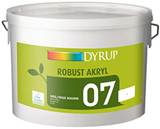 Dyrup ROBUST 07 Del af en serie af 100% rene akrylvægmalinger af særlig høj kvalitet til indendørs brug. Velegnet til børneværelser, korridorer etc. Glans ca. 7 læs mere Datablade