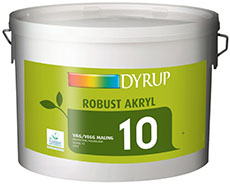 Dyrup ROBUST 10 ROBUST 10 er en del af en serie af 100% rene akrylvægmalinger af særlig høj kvalitet til indendørs brug ROBUST 10 er velegnet til f.eks. kontorer, hospitaler ect. Glans ca. 10. læs mere Datablade