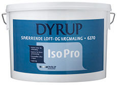DYRUP IsoPro Spærrende Loft- og Vægmaling (6270) DYRUP IsoPro er en spærrende acrylplastmaling til lofter og vægge. Glans ca. 5 Spærrer effektivt for gennemslag af vandopløselige farvestoffer som f.eks. nikotin, tørre vandskjoler og træolier læs mere Datablade